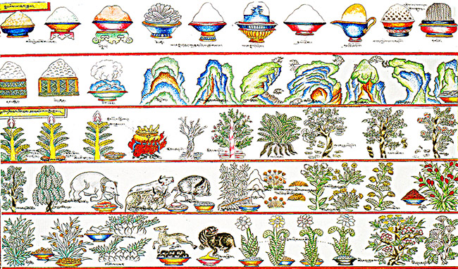 青藏高原地域的遼闊和自然條件的復(fù)雜多變,決定了它豐富多彩的動(dòng)植物資源。據(jù)多年來調(diào)查采集的標(biāo)本和搜集的資料統(tǒng)計(jì),已入藏藥的植物計(jì)有191科682屬2085種。其中菌類植物5科5屬50種;地衣類4科46種;苔蘚類5科5屬5種;蕨類30科5屬5種裸子植物52屬47種植3變種;被子植物131科581屬1895種141變種。此外,尚有動(dòng)物藥57科111屬159種,礦物藥50余種。常用藏藥中有三分之一用藥與中藥相同。藏區(qū)本地草藥占常用藏藥一半以上。