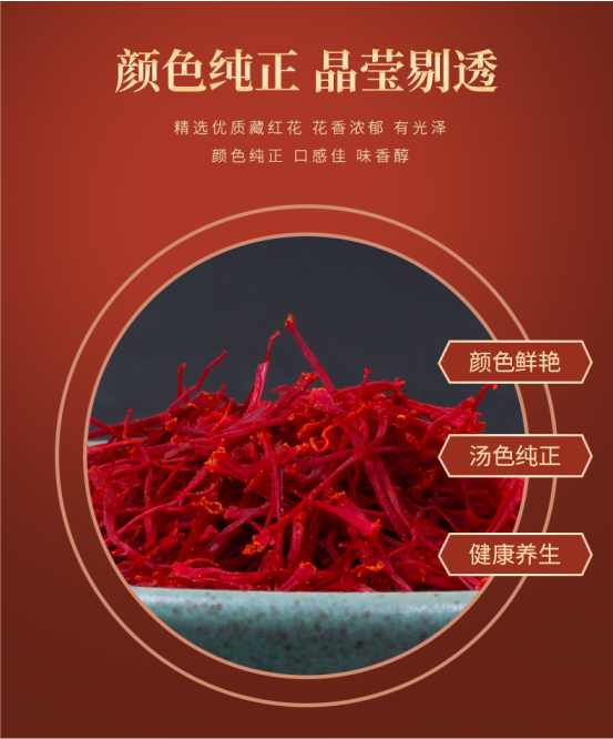 紅花品質(zhì)較佳。置陰涼干燥處,密閉保存。